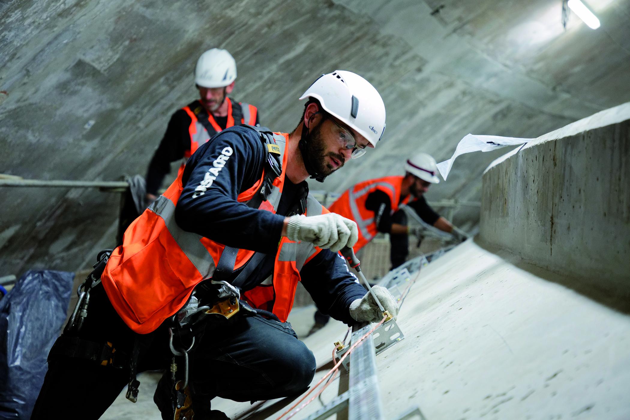 Des détecteurs d’accélération – installés ici en 2017 sur le bâtiment réacteur de l’EPR de Flamanville – préviennent de l’occurrence d’un séisme et de la nécessité de mettre aussitôt le réacteur en sûreté. - © Alexis Morin/Médiathèque EDF