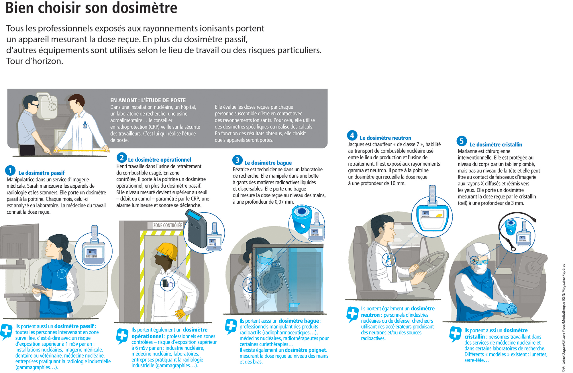 Tous les professionnels exposés aux rayonnements ionisants portent un appareil mesurant la dose reçue. En plus du dosimètre passif, d’autres équipements sont utilisés en fonction du lieu de travail ou des risques particuliers encourus. Tour d’horizon.