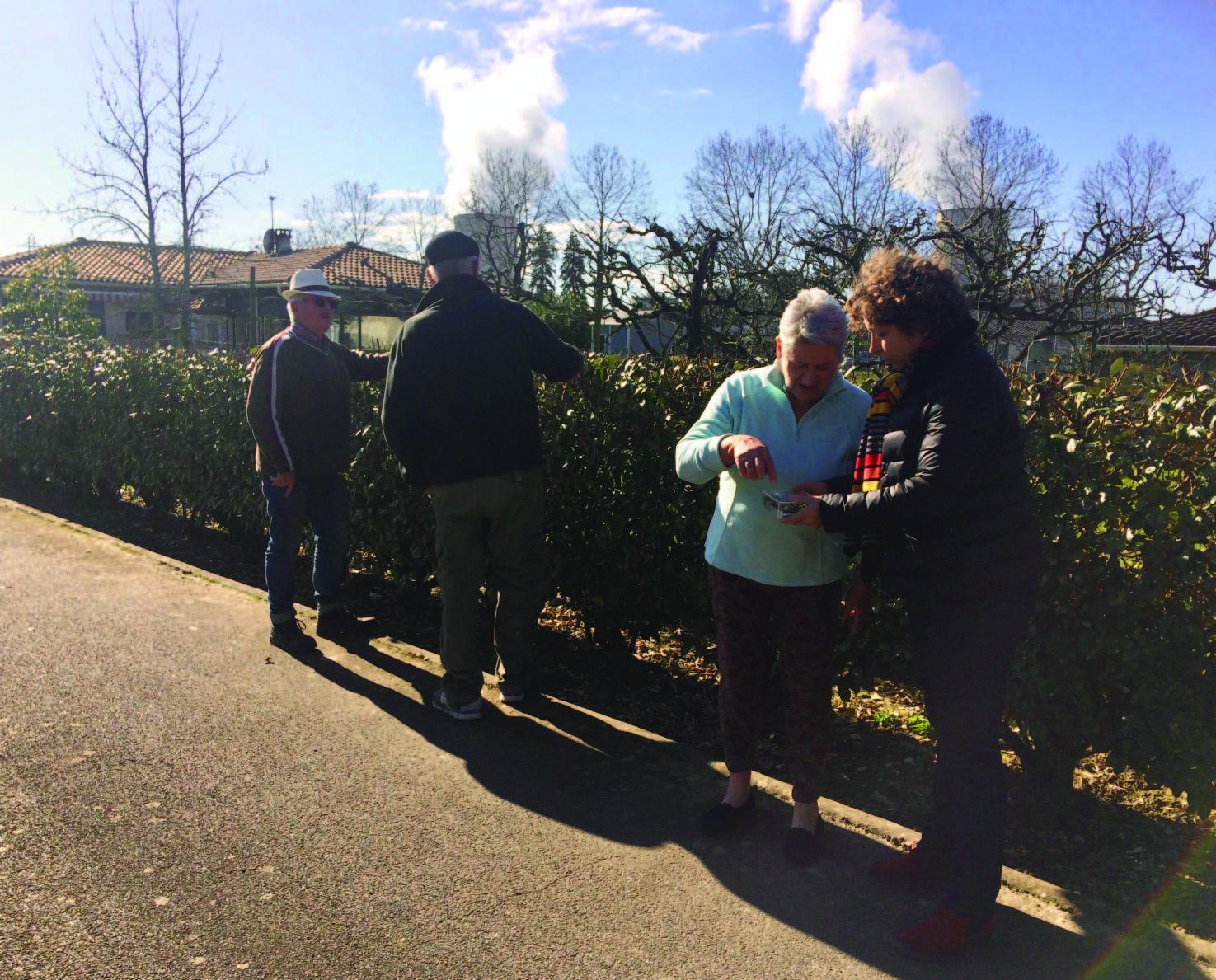 La mesure effectuée par Véronique Auguste (à droite) avec les habitants s’affiche en direct sur un portable - ©CLI de Golfech