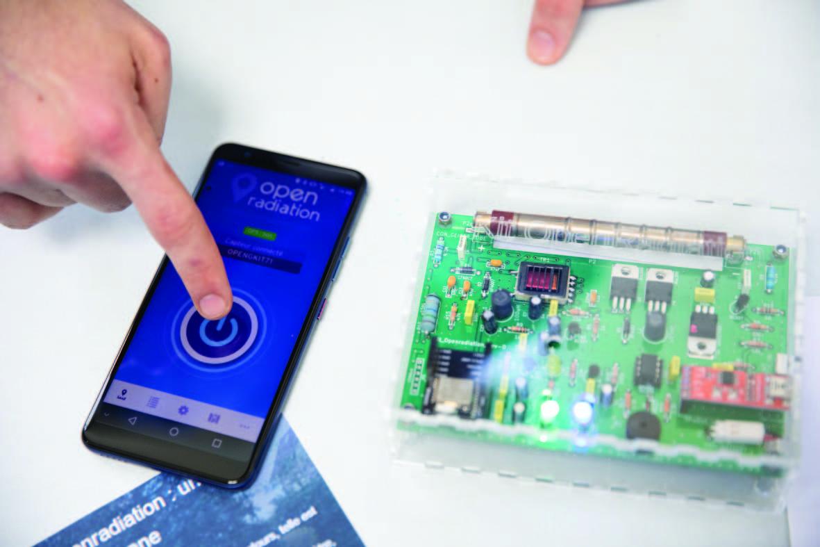 « Le dosimètre d’OpenRadiation est constitué d’un compteur Geiger relié à une application sur smartphone1. Celle-ci sert de moniteur, de GPS et envoie les données sur le site internet doté d’un outil cartographique », décrit Paulina Lordachi, quinze ans, élève de seconde au lycée Louis-de-Broglie à Marly-le-Roi (Yvelines). Dans cet établissement, huit passionnés de sciences encadrés par deux enseignantes, Hélène Castel et Vanessa Martin, s’engagent dans le projet de sciences participatives. Dénommé OpenRadiation, il mesure la radioactivité dans l’environnement. Enthousiastes, ces élèves assemblent eux-mêmes le kit du dosimètre et soudent ses composants électroniques. À tour de rôle, ils réalisent des relevés autour de la ville. « Un expert de l’IRSN est venu avec nous faire les premières mesures », se souvient Paulina. Elle énumère quelques consignes simples à respecter : se trouver à un mètre du sol, dans un espace dégagé, attendre une cinquantaine de « coups », ce qui peut prendre deux à cinq minutes… Originaire de Moldavie, cette jeune fille, qui envisage une carrière de médecin radiologue, est marquée par la catastrophe de Tchernobyl, dont les effets se font encore sentir. « Dans mon pays d’origine, nous ne pouvons plus consommer les champignons. » Elle occupe une partie de ses vacances à mesurer la radioactivité ambiante dans la forêt de Marly-le-Roi.