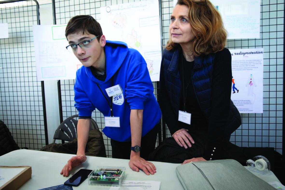 Hélène Castel, professeure de physique au lycée Louis-de-Broglie (Marly-le Roi), et Florent Mosnier, élève, présentent OpenRadiation - ©Sophie Brändström/Signatures/Médiathèque IRSN