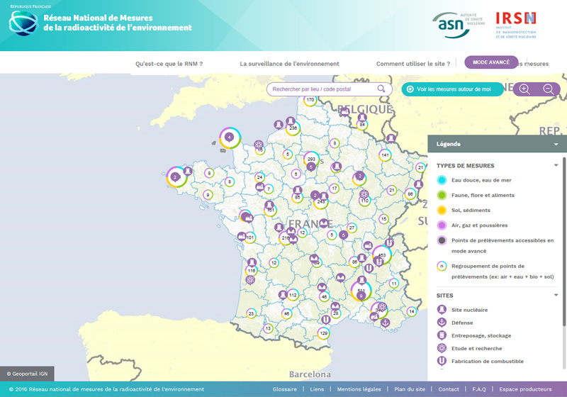 Le site www.mesure-radioactivite.fr met à disposition du public 300 000 mesures de radioactivité réalisées en France chaque année. - © Réseau national de mesures de la radioactivité de l'environnement