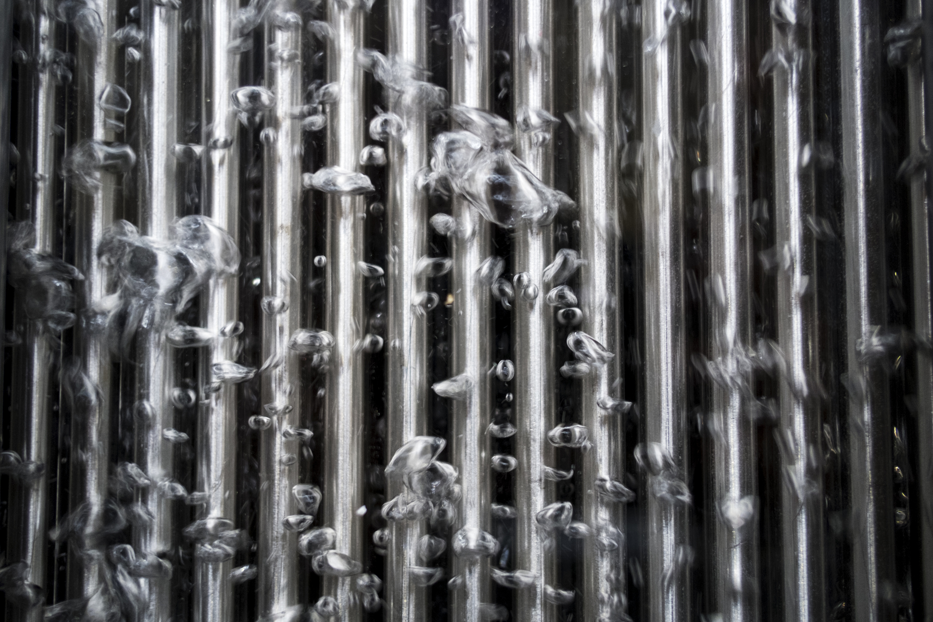 Ces petites bulles d’air remontant dans l’eau le long des crayons combustibles n’ont rien d’anodin. Elles sont le signe qu’un incident est en cours au sein d’une piscine d’entreposage de combustibles usés d’une centrale nucléaire. Ici, il s’agit d’une simulation, menée dans une installation expérimentale. La piscine est le lieu d’entreposage du combustible usé jusqu’à ce que sa puissance résiduelle qui dégage de la chaleur soit suffisamment faible pour permettre son évacuation. S’il n’est pas refroidi correctement – rupture de la tuyauterie du circuit de refroidissement de la piscine, arrêt des pompes comme à Fukushima –, il s’agit d’un accident de perte de refroidissement. L’augmentation de la température de la piscine peut conduire au découvrement – ou dénoyage – et à l’échauffement des assemblages de combustible eux-mêmes. Si aucune mesure n’est prise, il se produit un emballement de la réaction exothermique d’oxydation des gaines par la vapeur d’eau et par l’air. Les crayons se dégradent et les produits radioactifs qu’ils contiennent sont relâchés. Afin de décider quelles mesures prendre pour éviter le découvrement, il est nécessaire de mieux comprendre le déroulement de ce type d’accident. Le programme de recherche Dénopi1 mené par l’IRSN à Cadarache (Bouches-du-Rhône) vise à acquérir des données sur les phénomènes physiques mis en jeu lors de la perte de refroidissement. Les scientifiques analysent les différentes situations d’accident, du moins important – le volume d’eau baisse, mais sans dénoyer le combustible – au plus grave – le combustible est découvert et la gaine commence à se dégrader.
